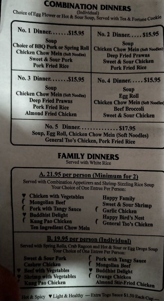 This cozy restaurant boasts a diverse menu with options to satisfy every craving, from flavorful appetizers like BBQ Pork and Fried Prawns to hearty soups like Hot and Sour Soup and Wonton Soup. The noodles and rice dishes are a standout, with choices like Ten Ingredients Chow Mein and Shrimp Fried Rice that are sure to please your taste buds.